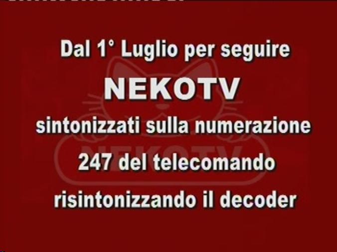 Neko tv riprende invece la consueta programmazione all’LCN 247 al posto di Capri Fashion , che viene quindi eliminato.