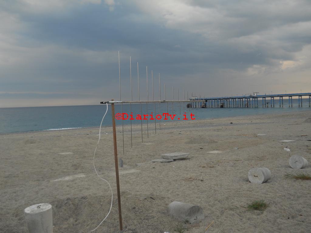 Trovato quindi il posto ideale , situato vicino il locale porticciolo e sfidando il cielo plumbeo, mi accingo a puntare la fida antenna logaritmica in posizione orizzontale ed a rilevare i segnali provenienti da Roccella.