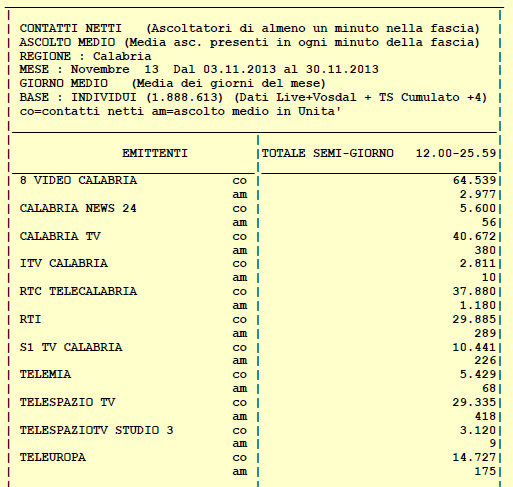Come da qualche mese a questa parte accade per nostra scelta , pubblichiamo di seguito i dati auditel privi di qualsiasi commento .